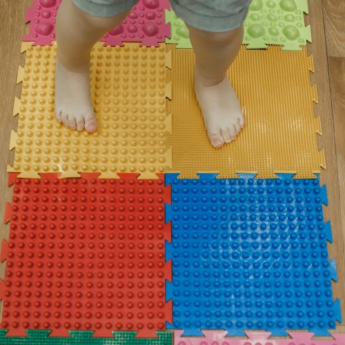tor przeszkód zbudowany z elementów o różnej fakturze. Dziecko podczas pokonywania tego toru doznaje wielorakich wrażeń dotykowych. Oprócz rozwoju zmysłu dotyku, zabawa na ścieżce sensorycznej wpływa też na sprawność motoryczną, percepcję wzrokową oraz planowanie ruchu.